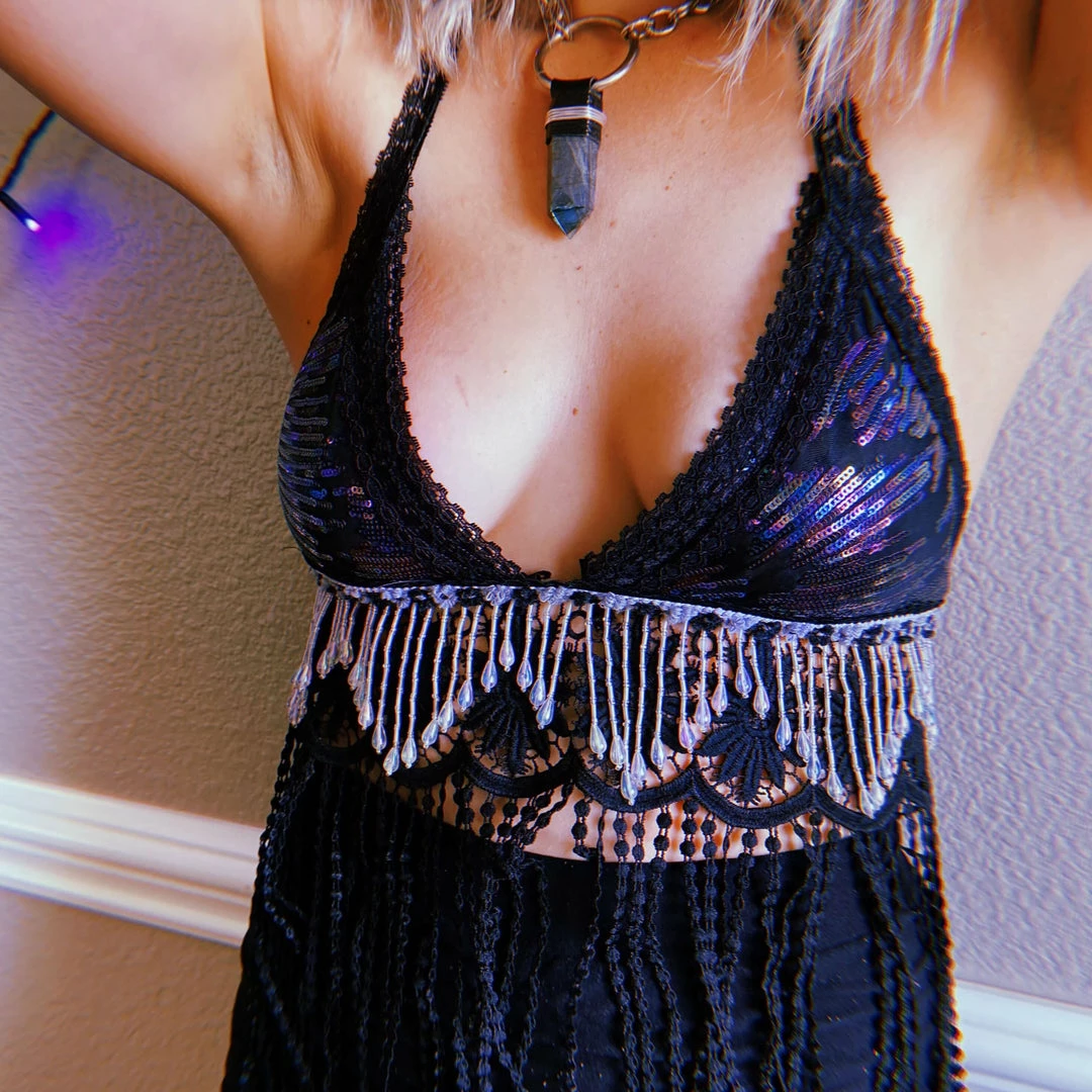 *** PLEASE NOTE THIS TOP IS HANDMADE & UNIQUE. Each is made to the artist’s current inspiration and will NOT BE IDENTICAL TO THE PHOTOS HERE. Lace thickness also varies based on cup size. ***