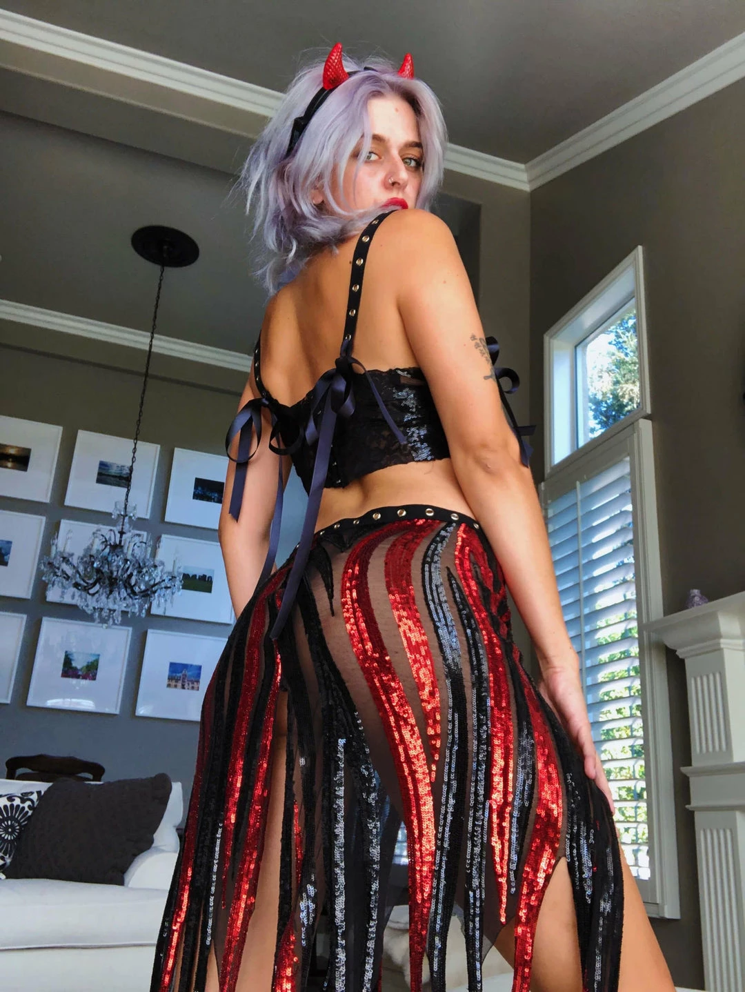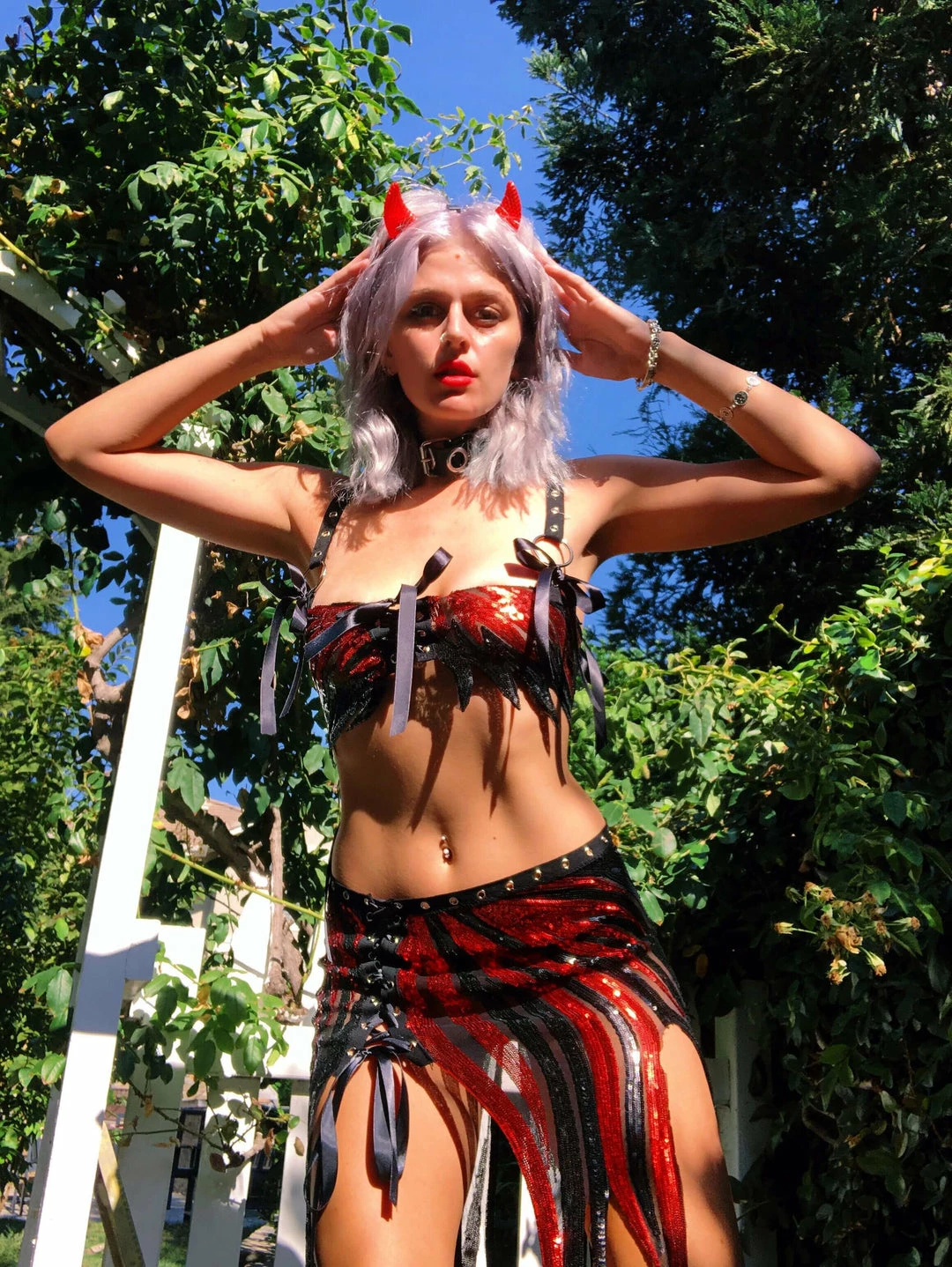Skirt is adjustable with lace up ties
