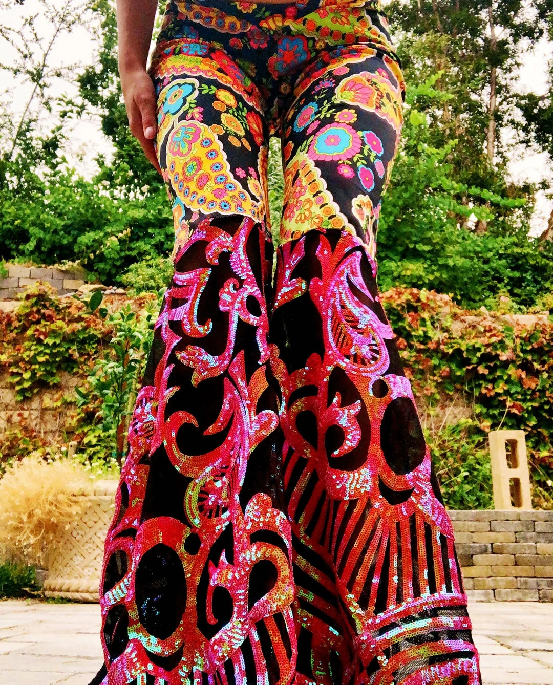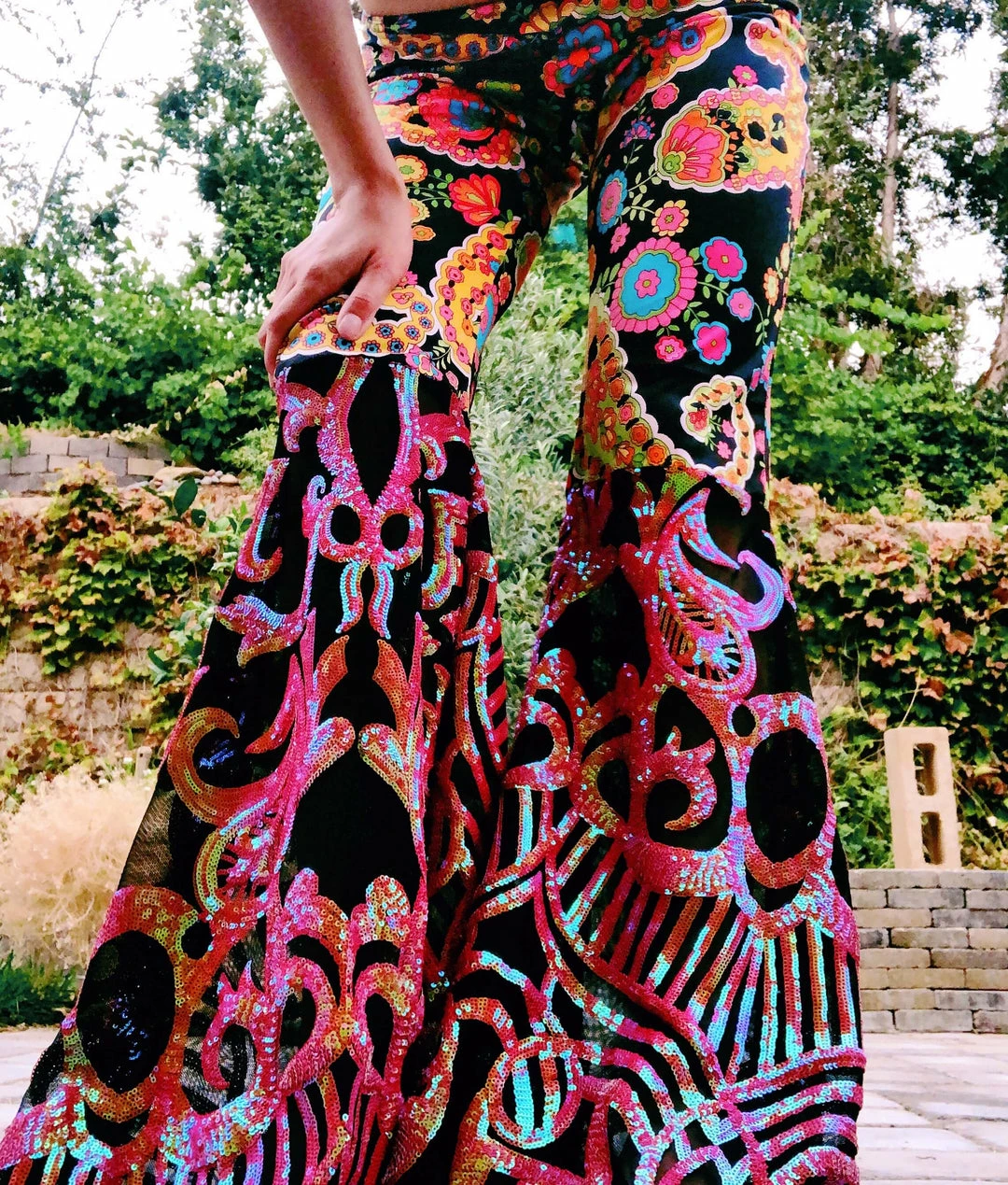 Reworked vintage psychedelic cotton pants from Funky Fresh Shop, discofied at the flare. These groovy pants are truly one of a kind & TRIPPY AF. These flares sit low and on your hips.Â