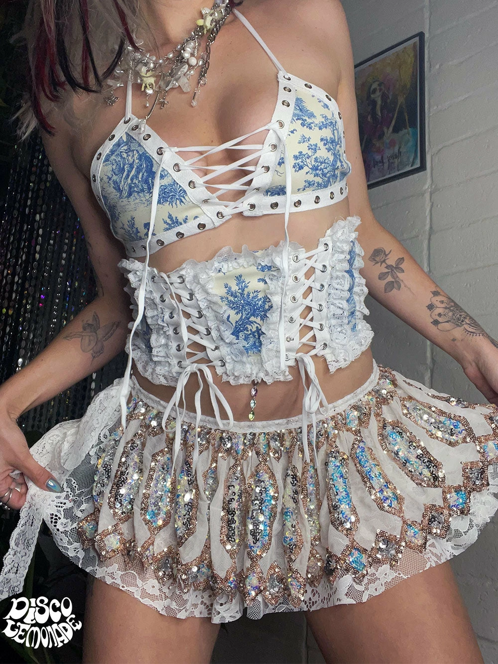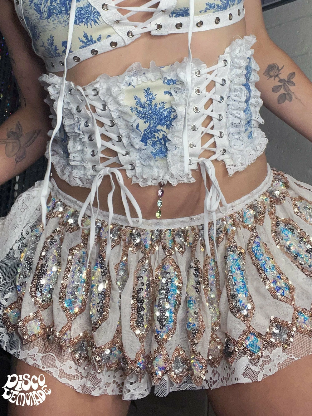 1 Large fits hip size 39-42 in (the lace under the sequin is longer)