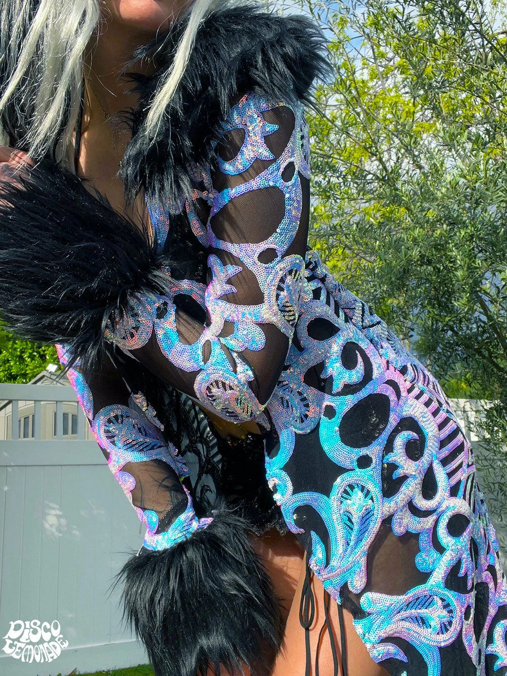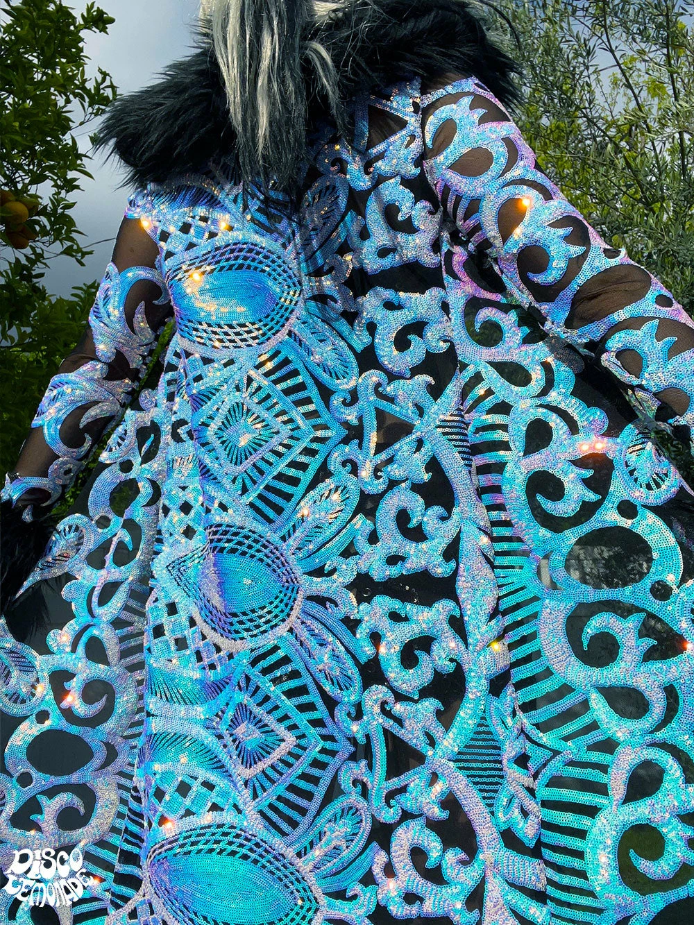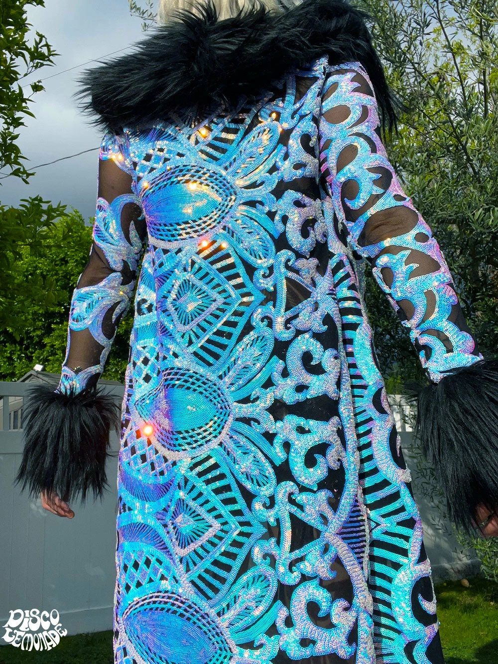 Our seductive sequin floor length duster is a MUST to layer over any cute Disco Lemonade dress, bells or cardigan to spice up your outfit.
