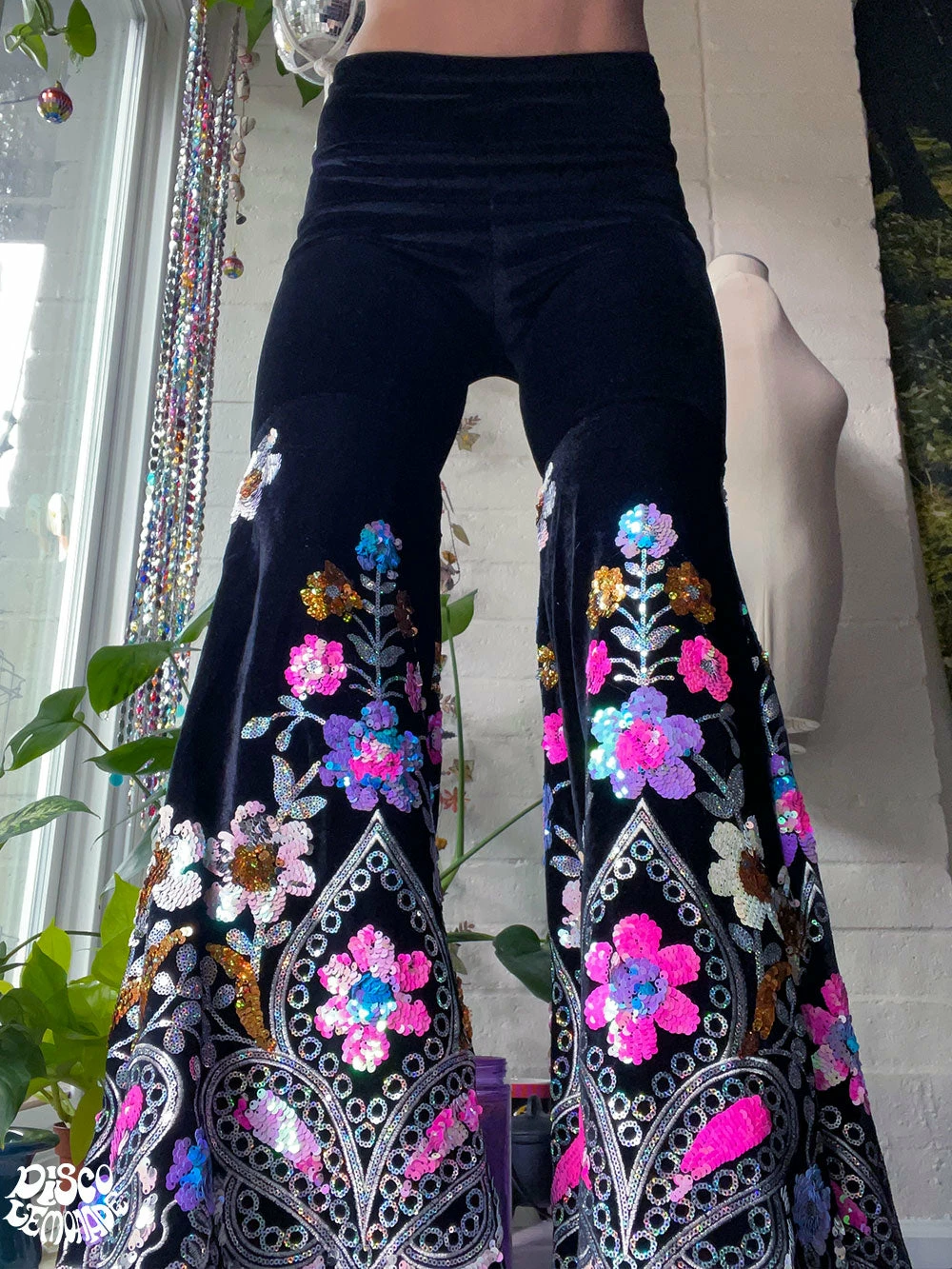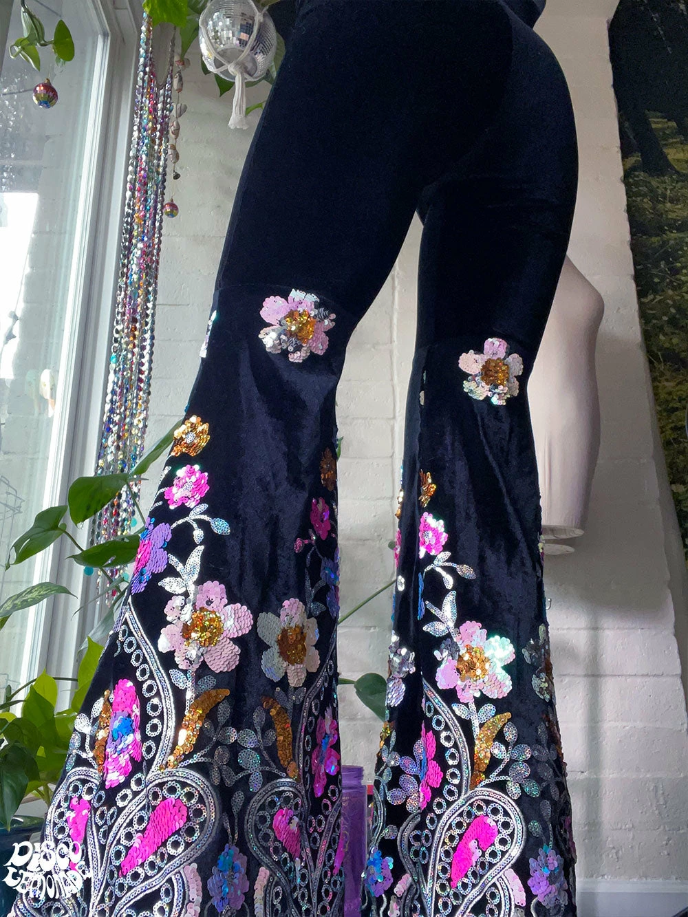 Purple velvet bells with big beautiful sequin bell bottoms.