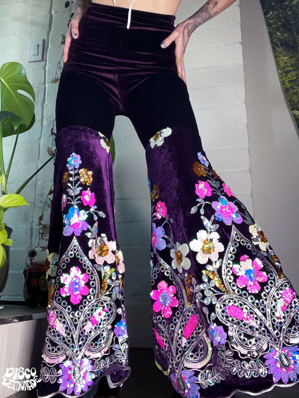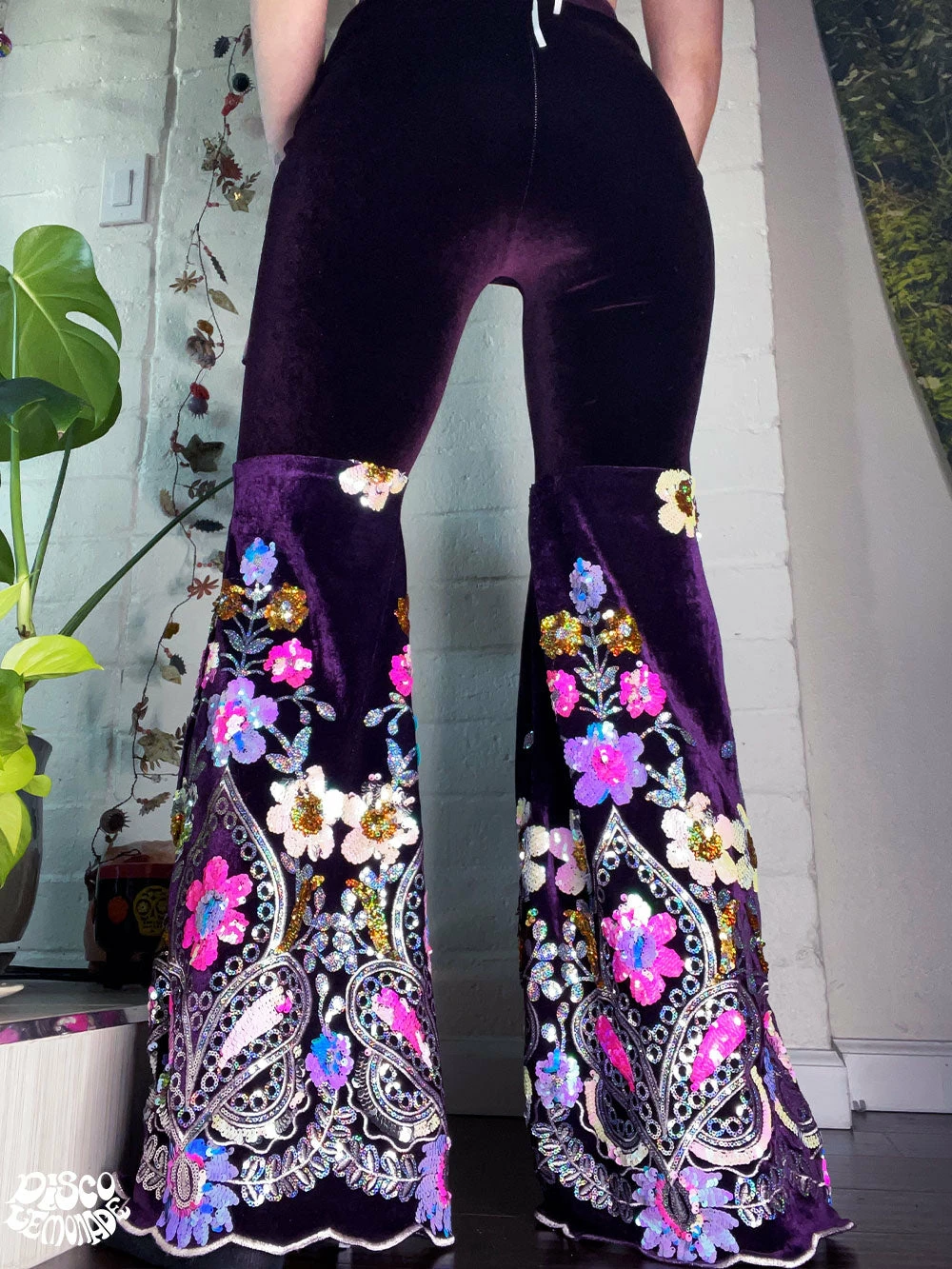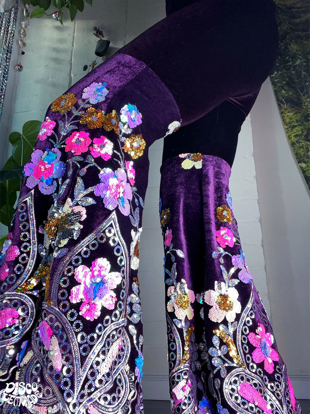 Purple velvet bells with big beautiful sequin bell bottoms.