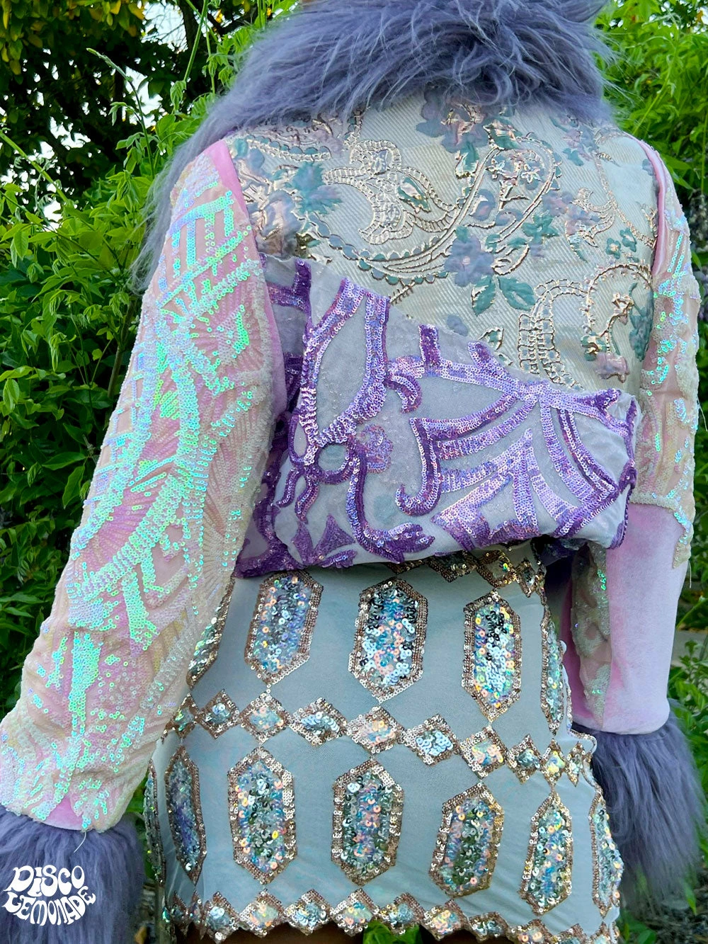 Astral pixie, blush & vanishing fae sequin cropped coat.