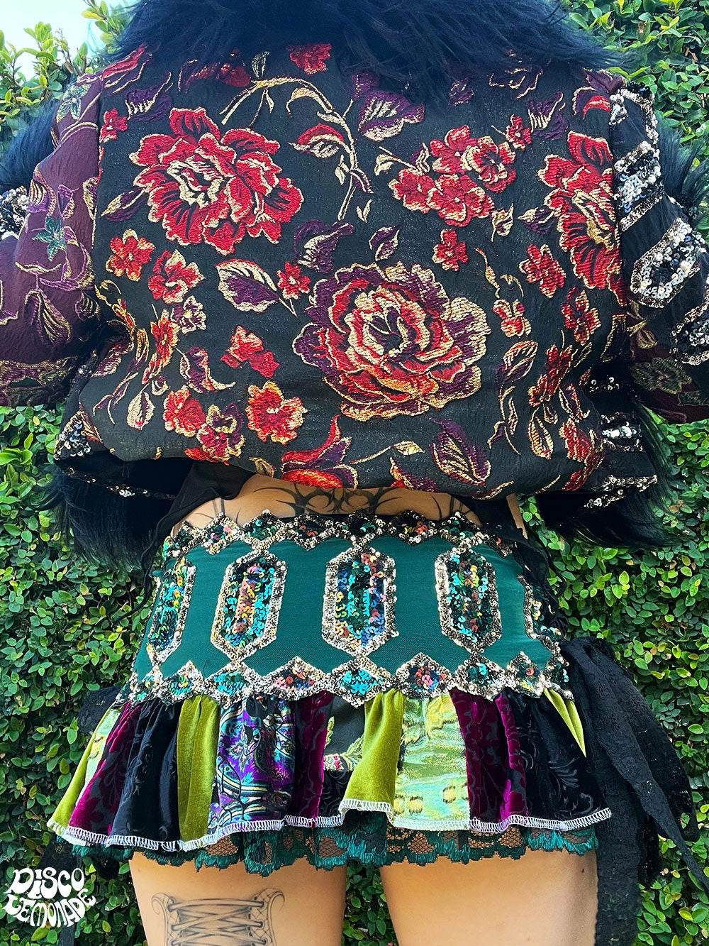 Sequin and brocade cropped coat.