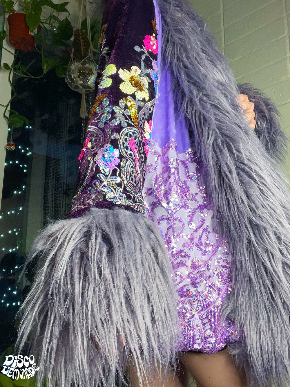 Lavender sequin sides, cobalt back and Royalty purple sleeves.