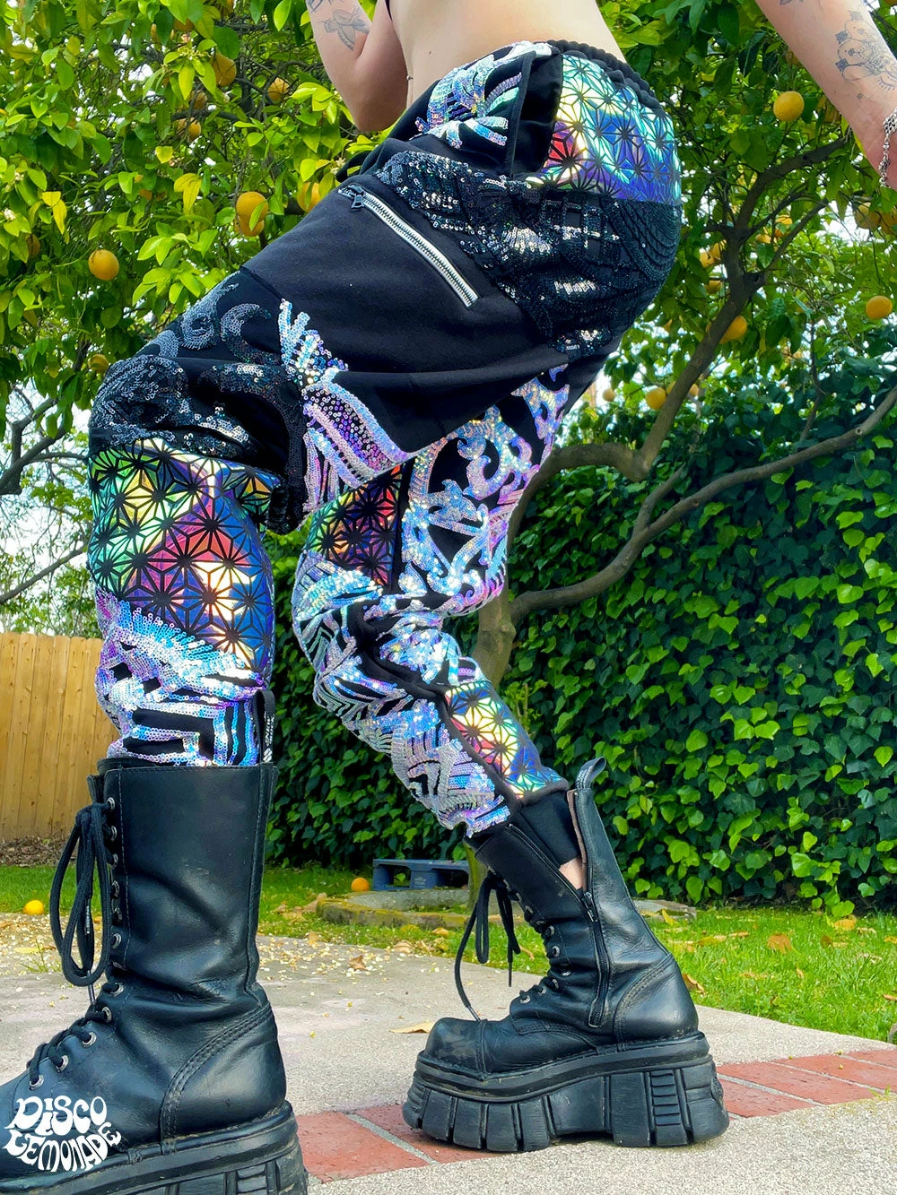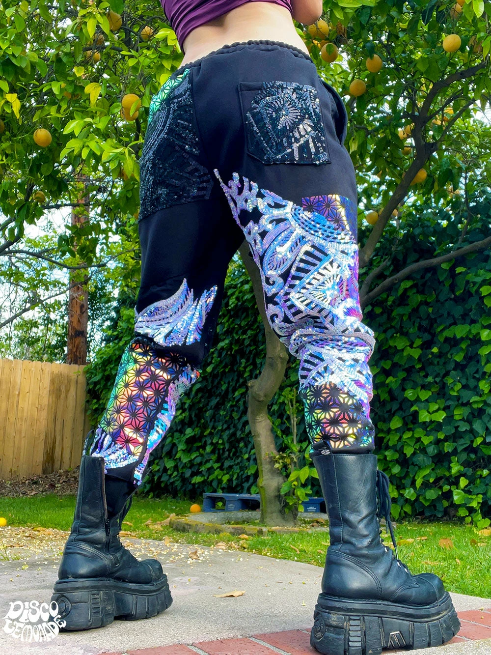 Comfy joggers with sequin & vinyl detailing.
